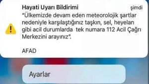 AFAD tarafında gönderilen Hayati Uyarı’nın telefonlara gelmesi için ayarlar kısmından ‘Acil durum bildirimleri’ bölümünün açık olması gerekiyor.