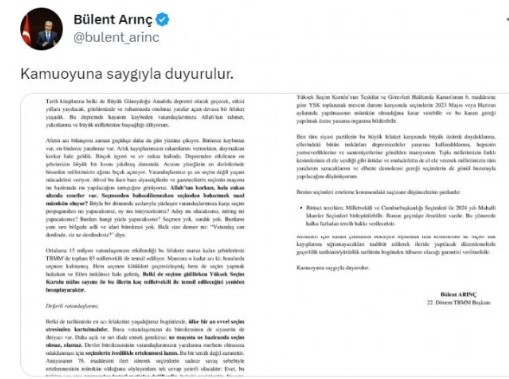 Seçim tarihinin ertelenmesi gerektiğini beliren Arınç, Twitter hesabından yaptığı açıklamasında şu ifadeleri kullandı: