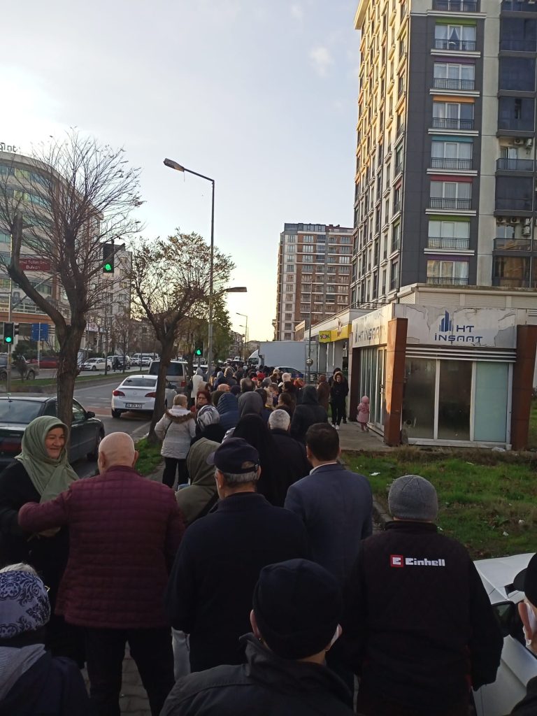 Vatandaşlar piyasa fiyatının neredeyse yarısı olan kuzu ve dana etinden kıyma, kuşbaşı ve tavuk alabilmek için erken sabahın erken saatlerinde Beylikdüzü’ndeki Et ve Süt Kurumu’na gelerek sıraya giriyor. Mağaza saat 09:00’da açılıyor ancak açılış saatinden önce gelip sıraya girmeyenler eli boş dönüyor.