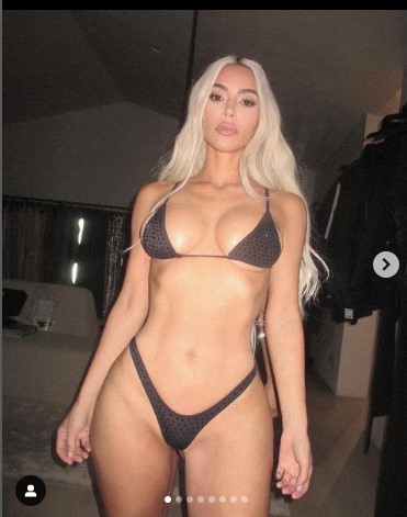 Kim Kardashian , Instagram hesabından paylaştığı son fotoğrafla hem sosyal medyanın hem de basının gündemine yine bomba gibi düştü! 42 yaşındaki ünlü yıldız, sosyal medya hesabından Swarovski taşlı bir tanga ile süslenmiş küçük siyah bir sütyenle yine fiziğini sergiledi.