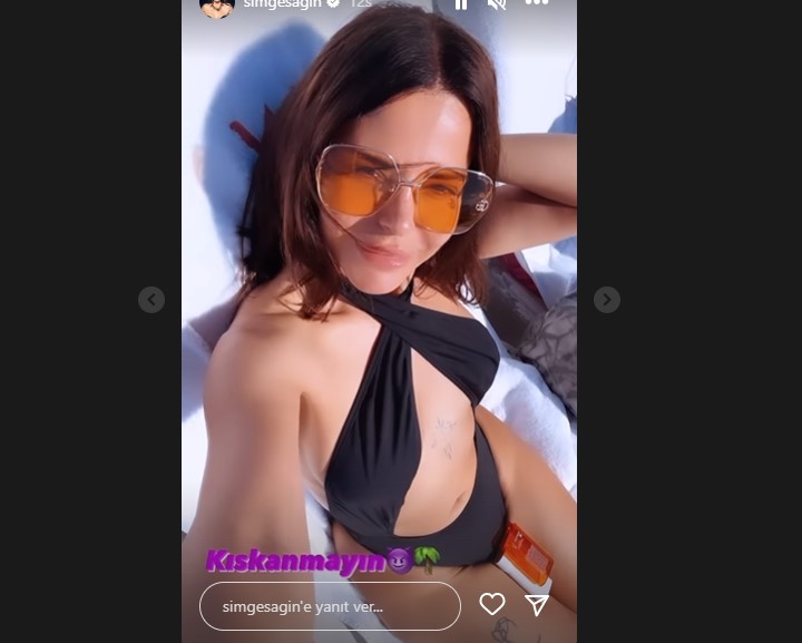 Simge Sağın kış ortasında mayolu fotoğraflarına gelen yorumlar üzerine yeni bir mayolu fotoğraf paylaşarak “Kıskanmayın” notu düştü.